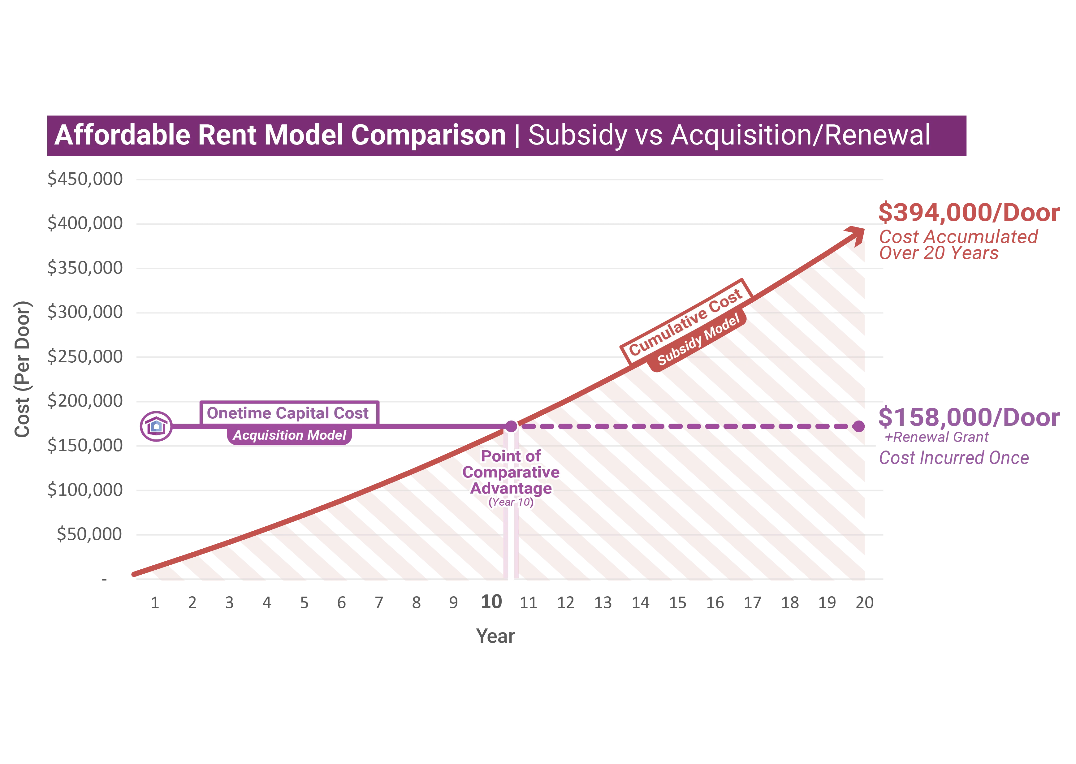 While rent subsidies can cost nearly $400,000 per unit over 20 years, the Fund achieves lasting affordability for less than half that—by buying and preserving existing affordable homes.